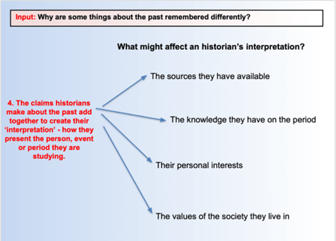 2. It aligns with our wider curricular goals. A commonly shared objective of teachers is also to challenge the pupils’ view of the past as fixed and objective. As in many schools, at Sawston we do this through the second order concepts of interpretations and significance and also by taking any opportunities to highlight the decision-making process that sits behind the history we receive.