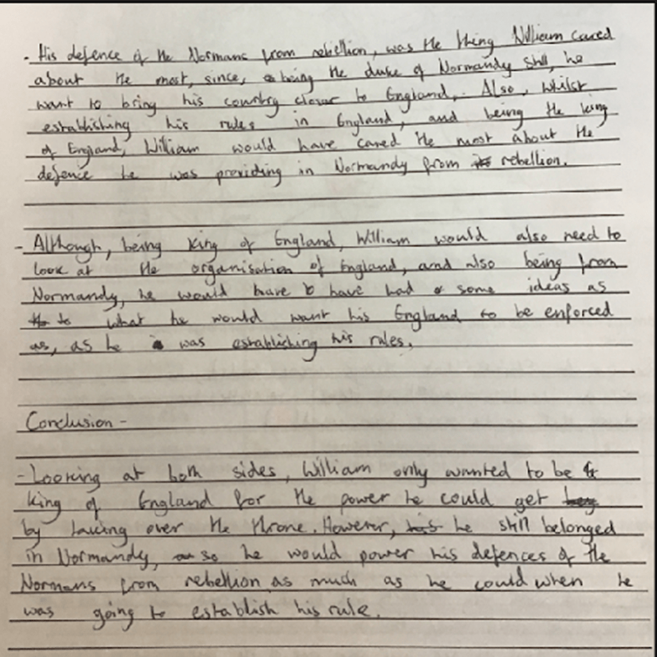 In Year 8 she was able to articulate the Conquest in a much more sophisticated way.