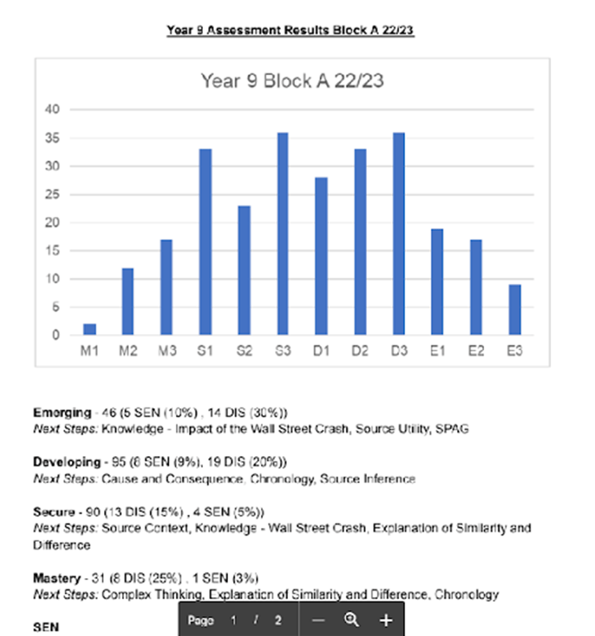 I then compile a report to the department which shows the distribution of grades across the year groups and within classes.