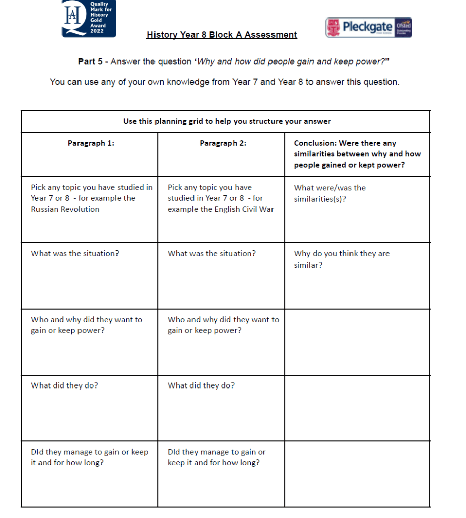 Like many of you I have carefully considered over recent years what I wanted our approach at assessment to be at KS3 in our department. Following my session at the HA Conference this May I have received requests for people not there for me to explain what our rationale is for assessment at KS3 and what we do at Pleckgate. I’ve tried to separate it out into our rationale for doing it, how we did it and the impact it has had below.