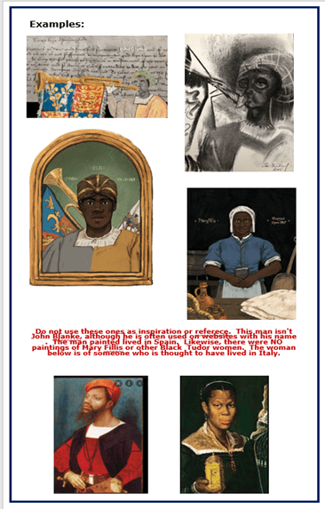 The first year that our students carried out their research homework, we were pleased with the content that they had decided to include. However, when I shared the work with Kaufmann, she pointed out a key misconception with the work – the research on Mary Fillis had a picture that a student had drawn. Why was this an issue? Because, there are no known portraits of Mary Fillis. The image that the student had drawn had been one that had surfaced on Google search when typing in Mary Fillis’ name…. but it is not her. Instead, the image that usually appears when Googling her name is the image of Catalina (who is correctly discussed here: The History Girls: BLACK TUDORS: The Untold Story by Miranda Kaufmann – Reviewed by Elizabeth Fremantle (the-history-girls.blogspot.com). Kaufmann then raised an interesting idea, pointing me in the direction of www.johnblanke.com. She suggested that it would be interesting if, like the project she linked me to, the students read the narratives of the different Black Tudors and created portraits based on what they had read and researched. This created the perfect opportunity to work with the art department, to position the students as artists tasked with creating portraits that we could then hang in our own gallery. Moreover, it brought to life the various ways that historical research can be used and the active work of a historian, as well as highlighting the voids that exist within history and how art historians, such as Michael Ohajuru, director of the John Blanke Project, are seeking to fill these voids.