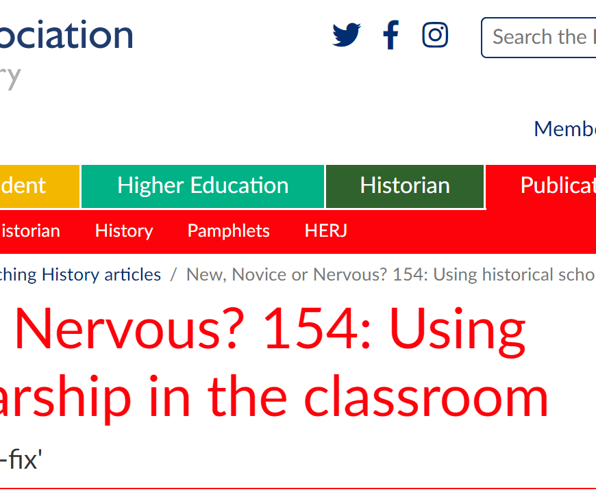Continuing our series of looking back to a past edition of Teaching History, Secondary Committee member Emma Bevan has returned to edition 120 from September 2005. Here she gives some thoughts about what she has found there that resonates today. A rallying cry to be braver in the history classroom When asked “why teach history?”, one of the most recurrent responses is that it allows … Continue reading Pearls of Wisdom from Teaching History 120